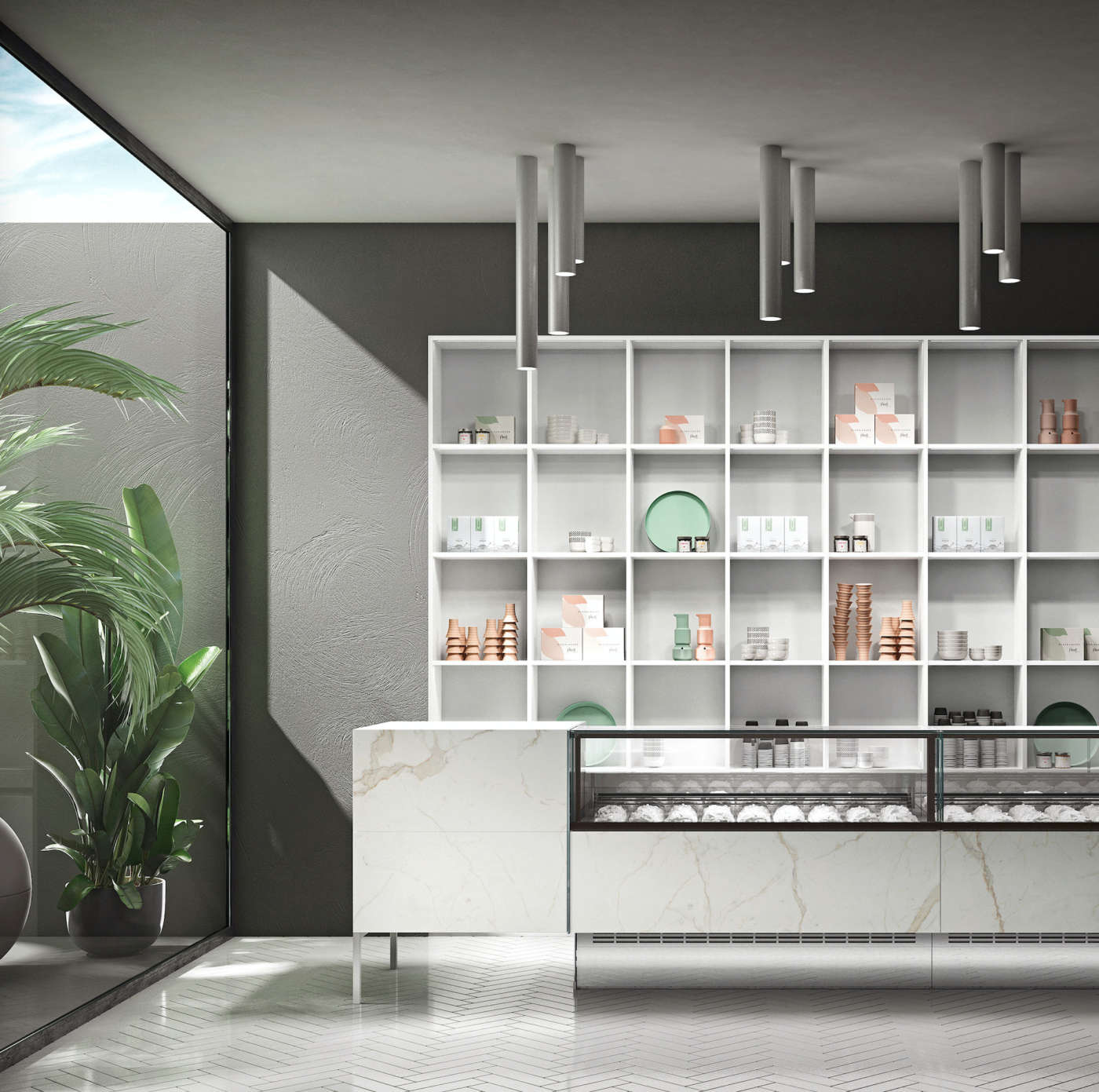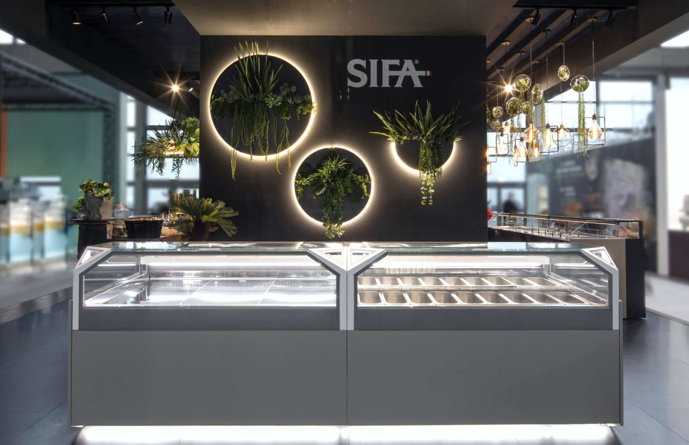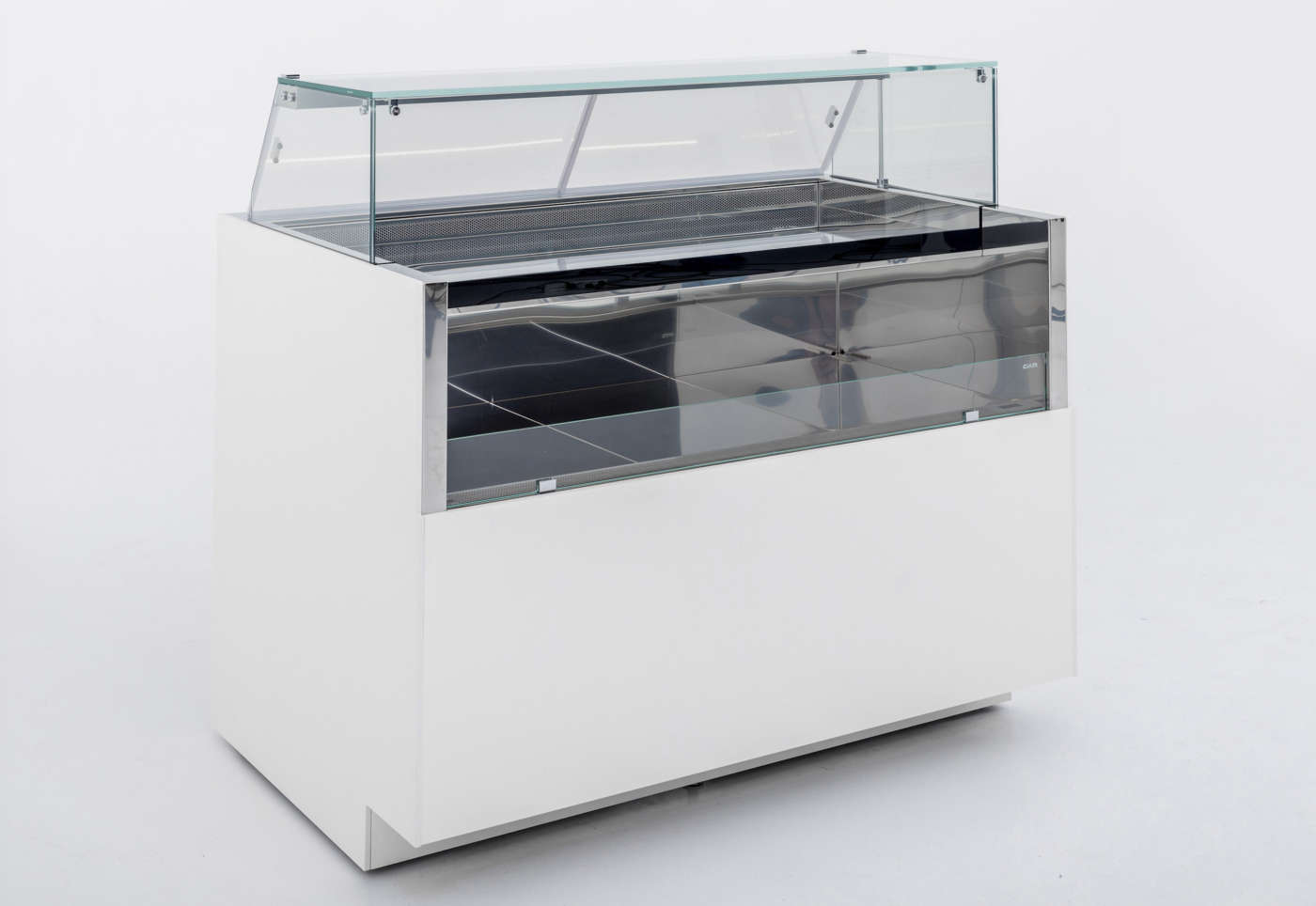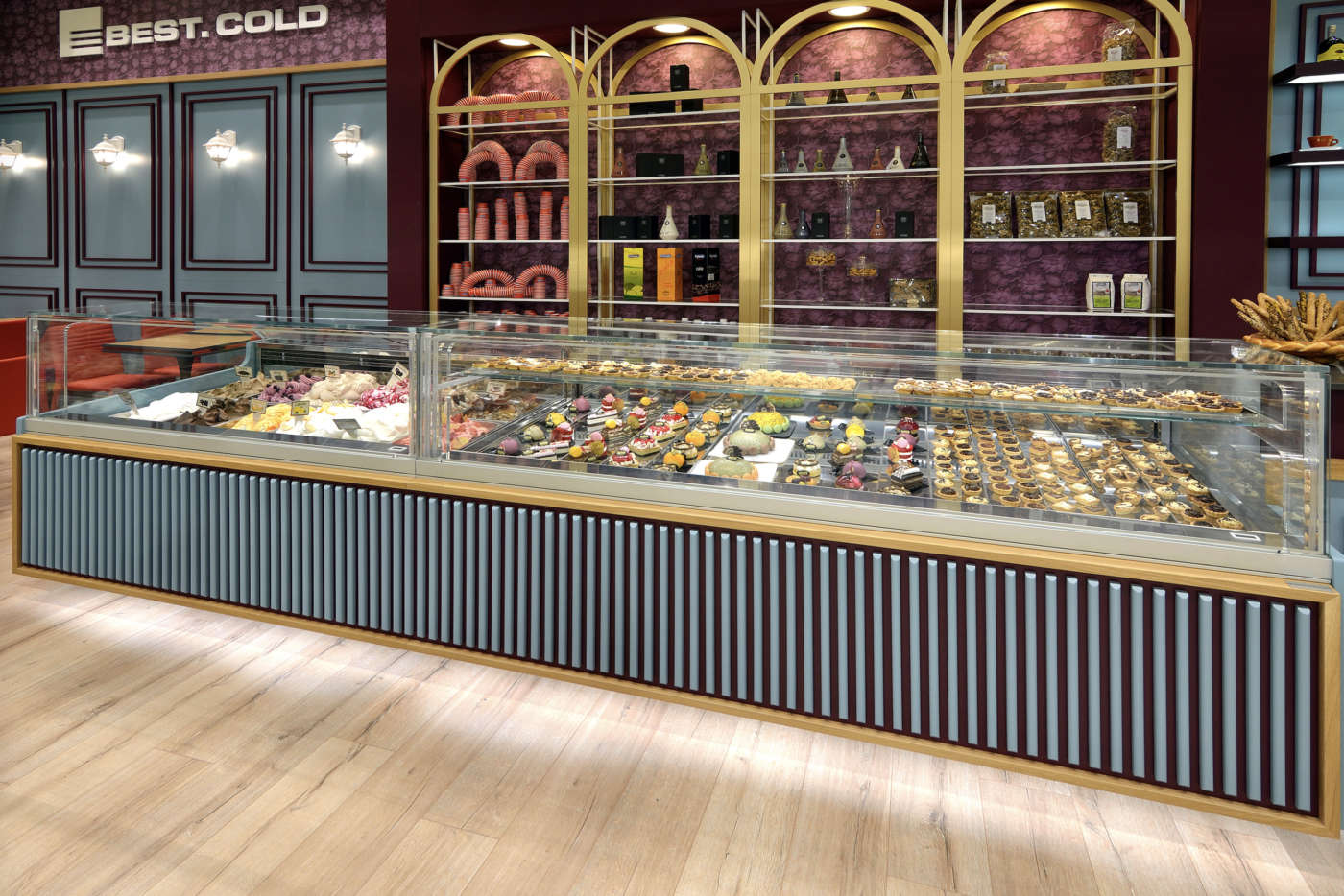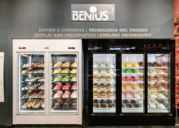 1 - Best.Cold Arredamenti - Coibentazione super efficiente Caratterizzata da un design essenziale, per privilegiare la massima visibilità delle vaschette di gelato o dei prodotti di pasticceria, Xenia di Best.Cold Arredamenti è altamente personalizzabile con diverse finiture, per consentire un design customizzato. Per i modelli refrigerati l’azienda ha aggiornato la parte tecnica ai nuovi regolamenti, in particolare per quanto riguarda il circuito refrigerante e per la coibentazione, resa più efficiente. Ma si è trattato di adattamenti minimi, perché il design dei prodotti era già in linea con le esigenze di ecosostenibilità più avanzate. Dati tecnici. Versioni per gelateria, pasticceria statica o ventilata, pralineria, caldo bagnomaria, caldo secco e neutra • Dimensioni tre altezze: 1.200 mm, 1.370 mm e 1.470 mm; profondità 1.200 mm • Vetrina tre tipologie: con vetri dritti, inclinati o curvi • Materiali basamento in acciaio tubolare verniciato; piani e vaschette in acciaio inox. 2 - Ciam - Banco a doppio fronte