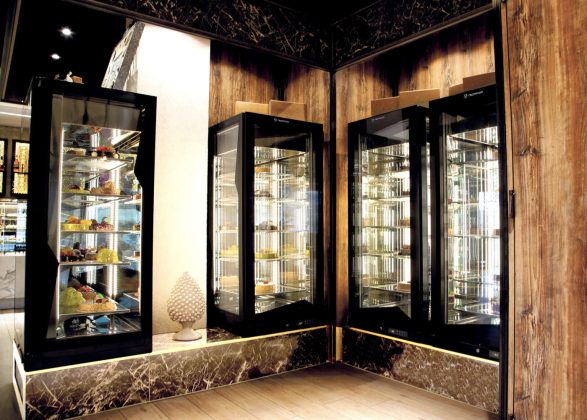 Pulizia delle linee estetiche e ampia trasparenza dei vetri caratterizzano la nuova vetrina Grace di FB, pensata per trovare posto in diversi tipi di esercizi e in diverse versioni per dare la massima visibilità al prodotto. La gamma di vetrine si caratterizza per una profondità estremamente contenuta, 89 cm, e consente quindi un inserimento facile in praticamente qualsiasi spazio. Un mix di tecnologia e sapienza artigianale, con molte possibilità di personalizzazione nei colori e nelle texture. Dati tecnici Dimensioni lunghezza: 1.085, 1.610 o 2.135 mm x 896 mm (profondità) x 1.200 mm (altezza) • Temperatura 0°/-20 C per gelateria - +2°/+16°C per pasticceria • Altre versioni Ambiente e Caldo secco (fino a +70 C) per gastronomia. 6 - Frigomeccanica - Refrigerazione su ogni piano