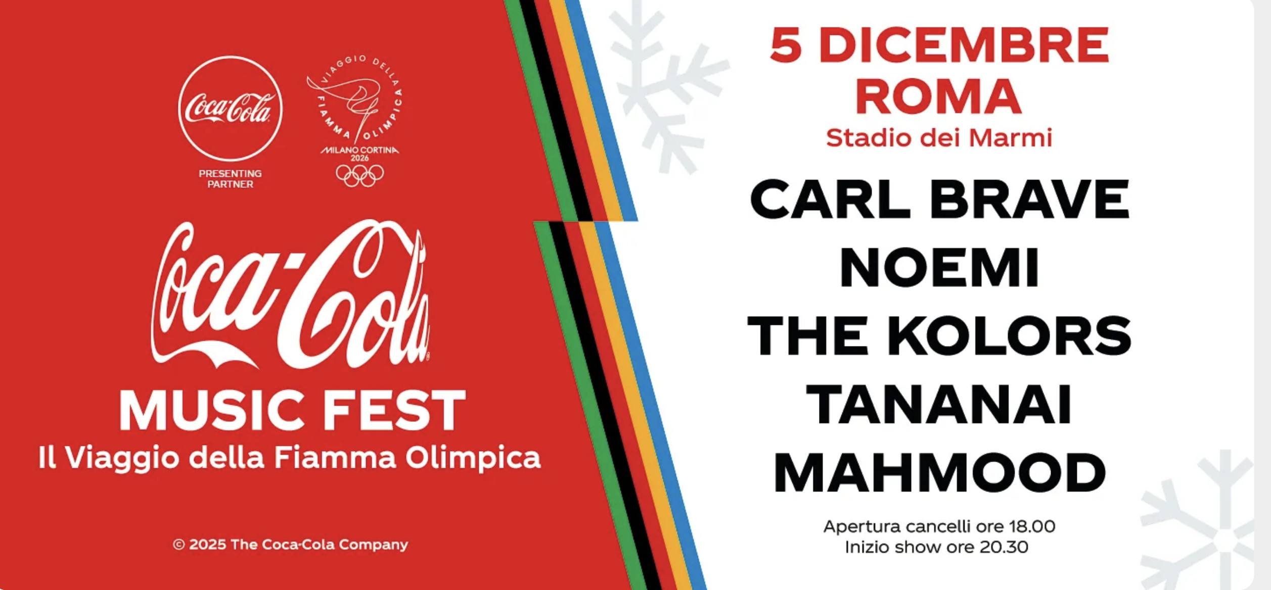 Il giorno prima della partenza da Roma il 6 dicembre, per la sera del 5 dicembre è stato organizzato una grande The Coca-Cola Music Fest presso lo Stadio dei Marmi “Pietro Mennea” al Foro Italico che comprende un concerto gratuito con le esibizioni di vari artisti, espressione di stile diversi come Noemi (soul), Mahmood (urban), The Kolors (pop-funk), Tananai (elettronic pop) e Carl Brave (rap e indie).