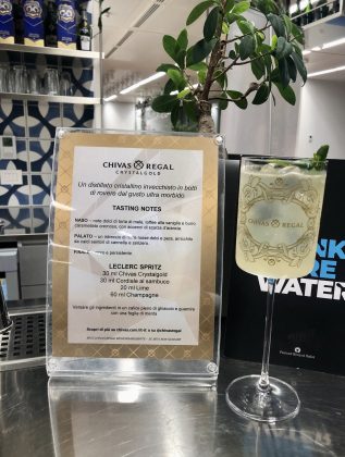 Per celebrare il lancio, Leclerc e Chivas Regal hanno ideato insieme il drink Leclerc Spritz, cocktail che unisce a 30 ml di Crystalgold, 30 ml di cordiale ai fiori di sambuco e 30 ml di Champagne Cordon Rouge, con un tocco finale di 20 ml di succo fresco di lime, da guarnire con una foglia di menta. Abbinamento consigliato? fettine di pera Williams e di mela verde che riportano alle fresche note del cocktail.