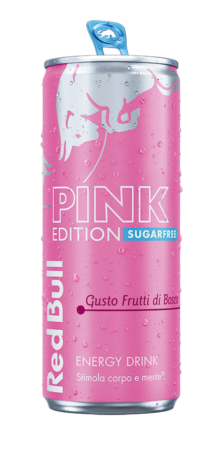 Presentata nella classica lattina da 25 cl vestita di un rosa acceso, Red Bull Pink Edition Sugarfree è un energy drink si caratterizza per il gusto ai frutti di bosco con spiccate note di lampone e verbena. Invariata la composizione con vitamine del gruppo B, caffeina (80 mg. equivalente a una tazzina di caffè espresso) e taurina ma con i dolcificanti sucralosio e acesulfame K al posto dello zucchero, con zero calorie.