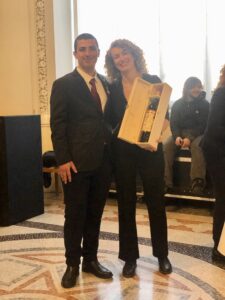 Miglior Cocktail con prodotti Carpano: Giulia Socia di Il Golosone Caffetteria di Champoluc-Ayas (Aosta) con il cocktail Tiki-Jiki, premiata da Lorenzo Burrone, Brand Ambassador Carpano 1786.