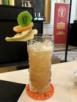 Una menzione particolare merita il bartender Jonathan Modica di Ritual Café & Wine di Pavia, in perfetta camicia a fiori hawaiana che ha utilizzato per il suo drink tre coloratissimi mug tiki (guarniti con ombrellino!).