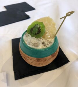 Shaker, servire in mug tiki in ceramica con spiedino di kiwi disidrato EB-Eredi Borgnino di kiwi.