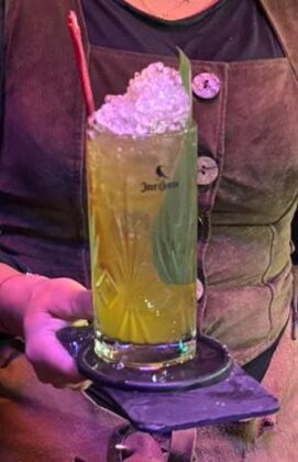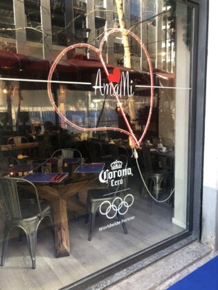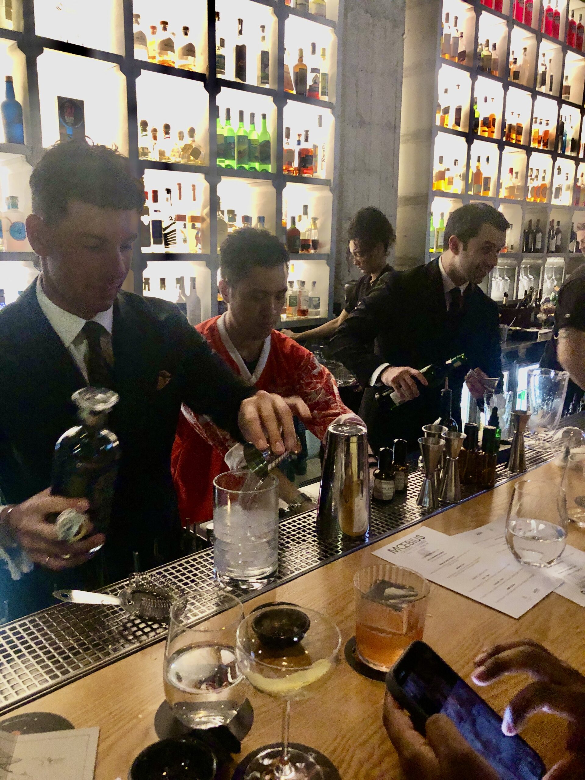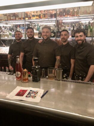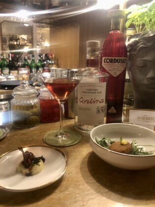 Elegante ristorante cocktail bar rivestito da pannelli di legno scuro, creato dall’imprenditore della moda Claudio Antonioli, il bar manager del cocktail bar e ristorante Sogni Milano Matteo Paulillo, ha proposto due cocktail. Olympic Vibes: 4,5 cl Savoia Americano Rosso Vermouth, 1,5 cl Mezcal Montelobos Espadin, 2 cl Winter Cordial (all’arancia, cannella e vaniglia) infuso con beurre noisette, top 1,5 cl tonica alla mela rossa, servito su cubo di ghiaccio in tumbler alto e peel di scorza di arancia. Gold Metal: 3 cl Italicus Rosolio di Bergamotto, 1 cl liquore al pino mugo, 3 cl Tequila Curado Blanco, 3 cl Bitter Bianco, 10 cl Pink Grapefruit Queen Cleo, servito su cubo di ghiaccio in tumbler basso.