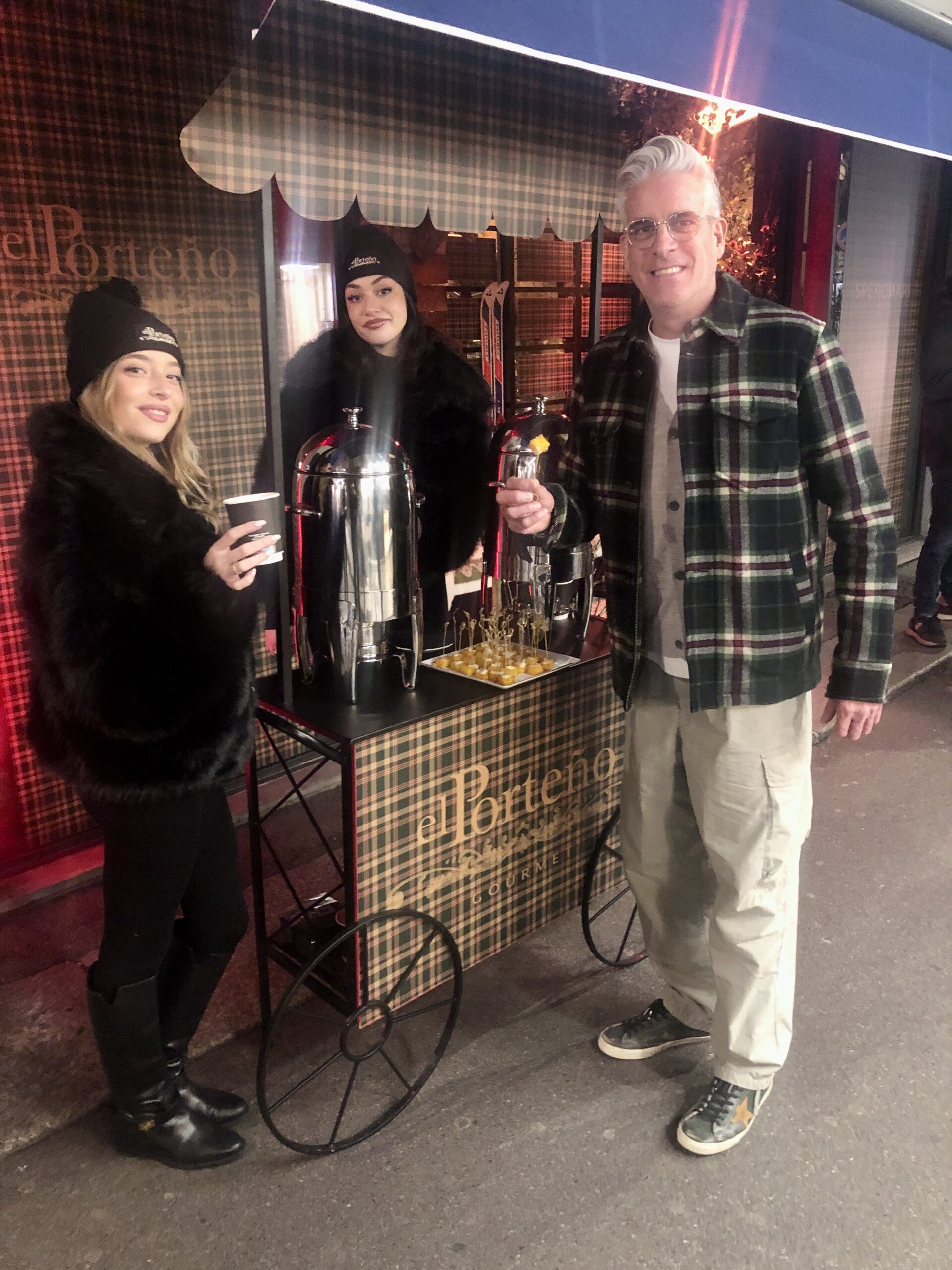 Il progetto El Porteño è stato creato anni fa dai soci Fabio Acampora e dai fratelli argentini Sebastian e Alejandro Bernardez, dando vita a una catena di locali tra Milano, Roma e Porto Cervo. Ultimo in ordine di tempo è il ristorante El Porteño Gourmet che ha scelto di riproporre due tipiche specialità alpine come Vin Brulé e Bombardino. Il Vin Brulé è realizzato a base di vino rosso argentino Malbec aromatizzato con chiodi di garofano, cannella, anice stellato, scorze di limone e arancia, zucchero di canna. Il Bombardino “milanese” è ottenuto riscaldando 5 cl liquore a base di uova Vov ed è proposto “corretto” con 2 cl di rum scuro e con top di panna montata spolverata di polvere di cacao. Abbinamento food con assaggi di polenta guarnita di formaggio. Spettacolare il dehors del ristorante, allestito come una tipica baita di montagna alla maniera della località sciistica argentina San Carlos de Bariloche, con divani e coperte di lana. Le due specialità alpine sono state servite (gratis) ai passanti da simpatiche hostess da due grandi distributori termos in acciaio su un apposito carrello.