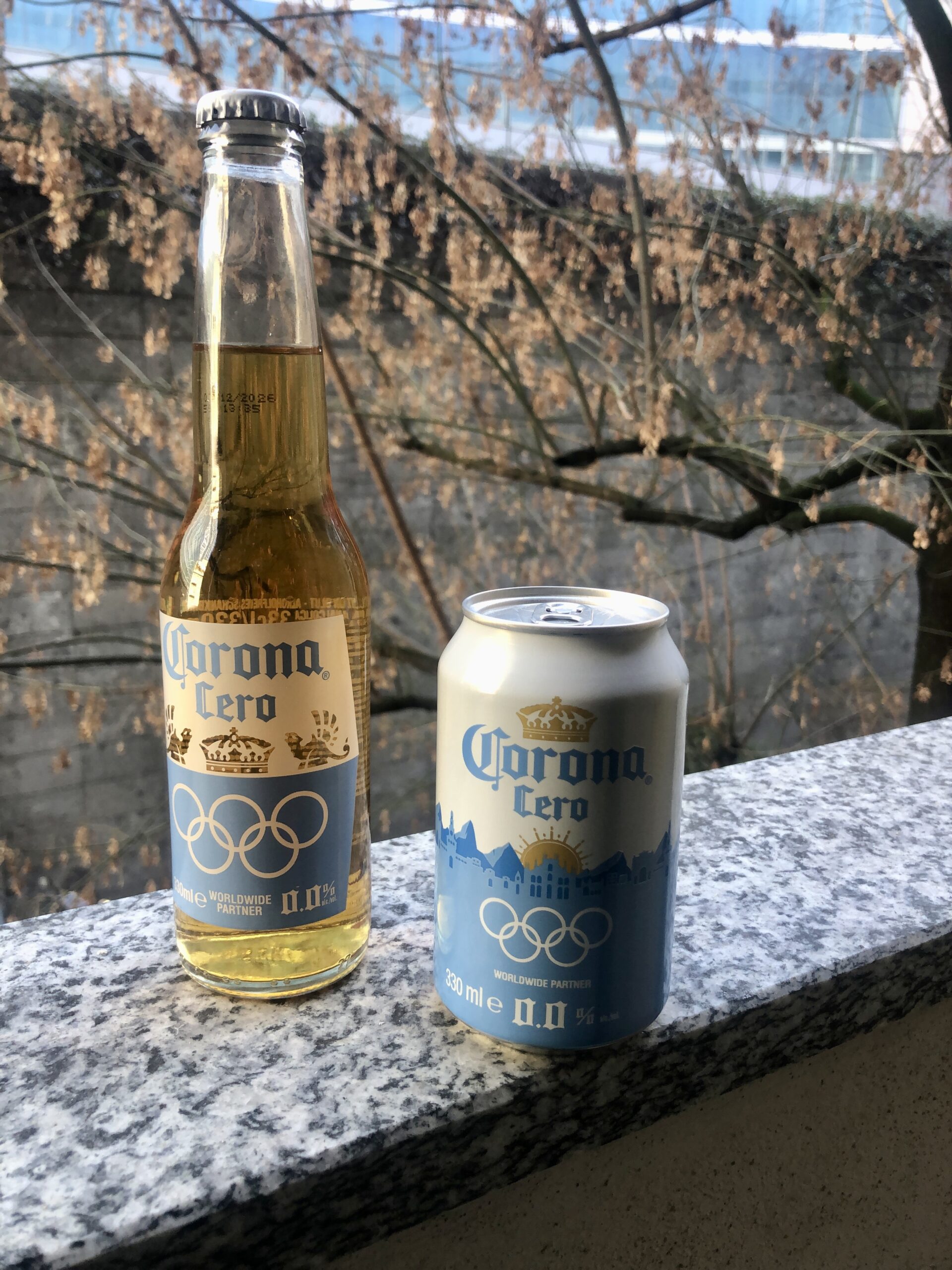 Presentata solo l’anno scorso, Birra Corona Cero è stato l’altro grande sponsor del settore beverage delle Olimpiadi Invernali, celebrate con un’apposita Golden Bottle da 33 cl con i caratteristici Cinque Cerchi Olimpici.
