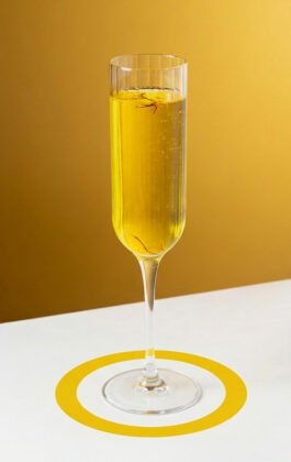 Golden Milano (Asia): 4 cl gin infuso al Riso Arborio, 2 cl sciroppo di zafferano, 2 cl succo di lampone, 6 cl Franciacorta Ca’ del Bosco Prestige, shaker con ghiaccio (meno lo spumante) versato in flûte, top di Franciacorta.