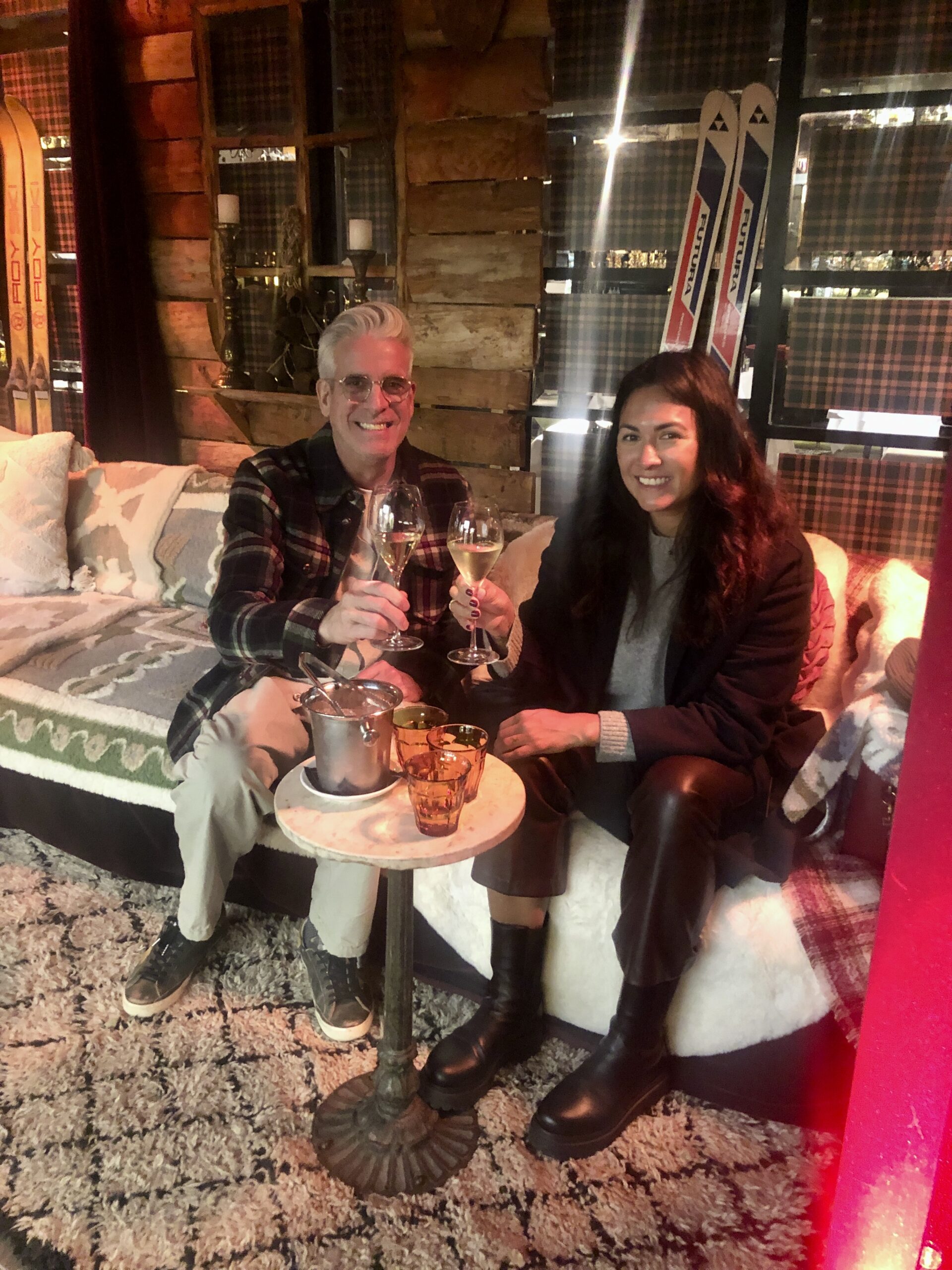 Sci Alpino Cortina è a base di Vermouth Bianco, Aperitivo Bitter Select, St. Germain liquore ai fiori di sambuco, top di vino spumante Trento Doc.