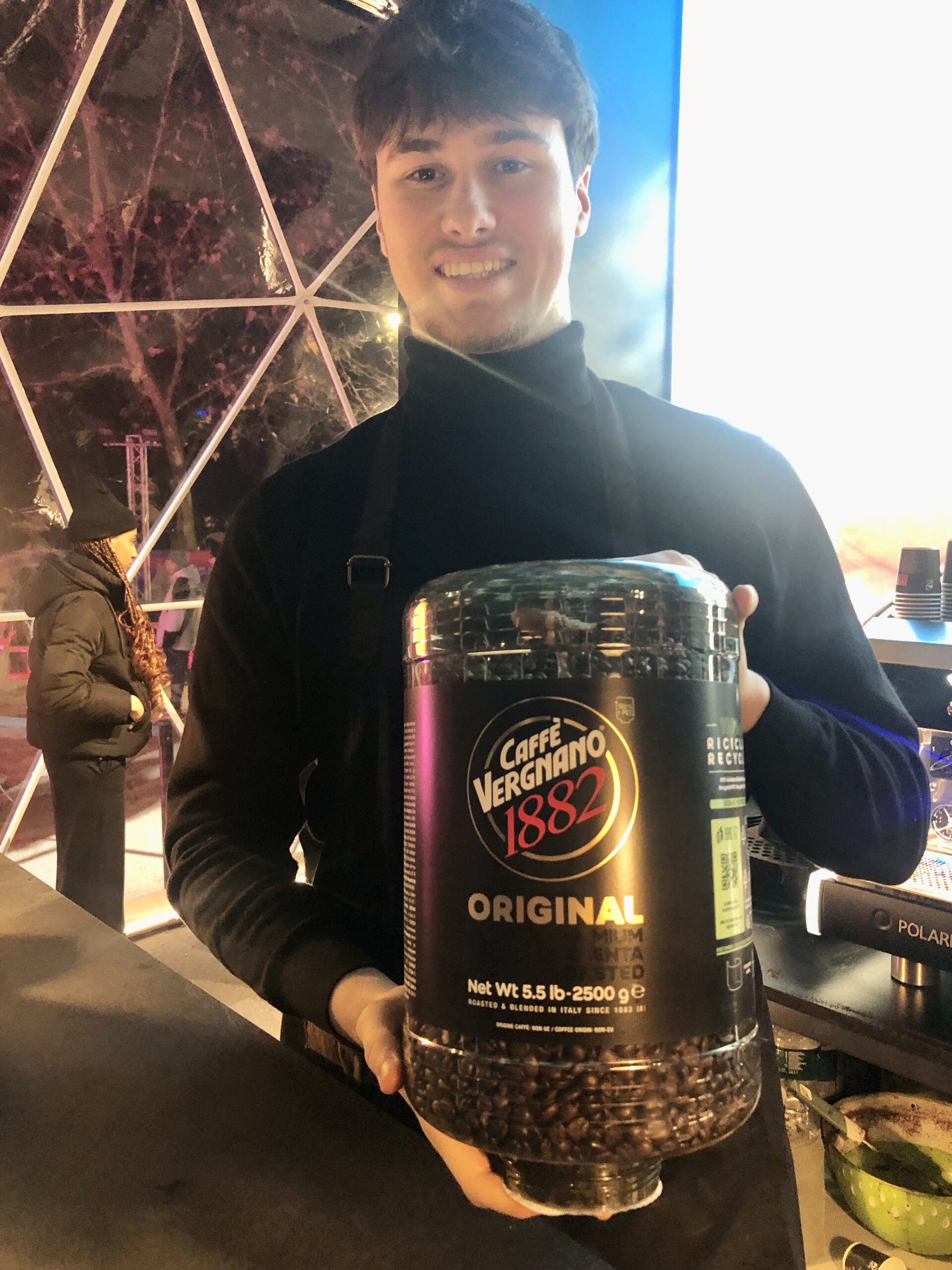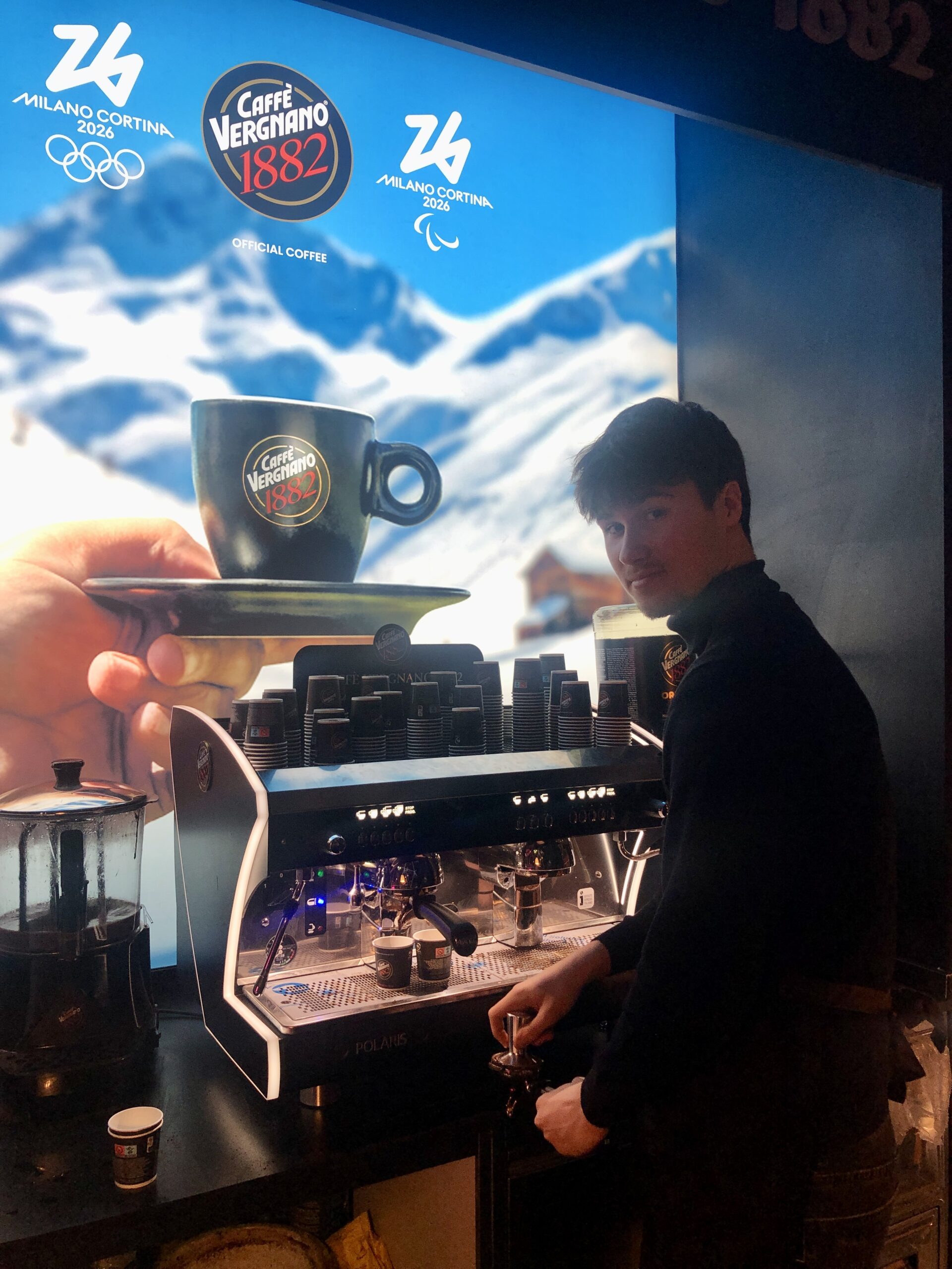 Official Coffee di Milano-Cortina 2026, il torinese Caffè Vergnano (grazie all’accordo di distribuzione con Coca-Cola Hbc) ha proposto a Milano, in piazza del Cannone dietro al Castello Sforzesco, un originale igloo trasparente che ha ospitato un percorso sensoriale in quattro momenti. In varie sedi olimpiche sono state inoltre riutilizzate sei cabinovie dismesse da funivia, dove atleti e spettatori hanno potuto gustare comodamente seduti, oltre alla classica Miscela Bar Caffè Espresso Vergnano 1882 Original, vari tipi di cappuccini e cioccolate calde. Per l’occasione è stato proposto il Caffè Dolomitico, a base di espresso arricchito con cannella, aromi di agrumi e crema in superficie.