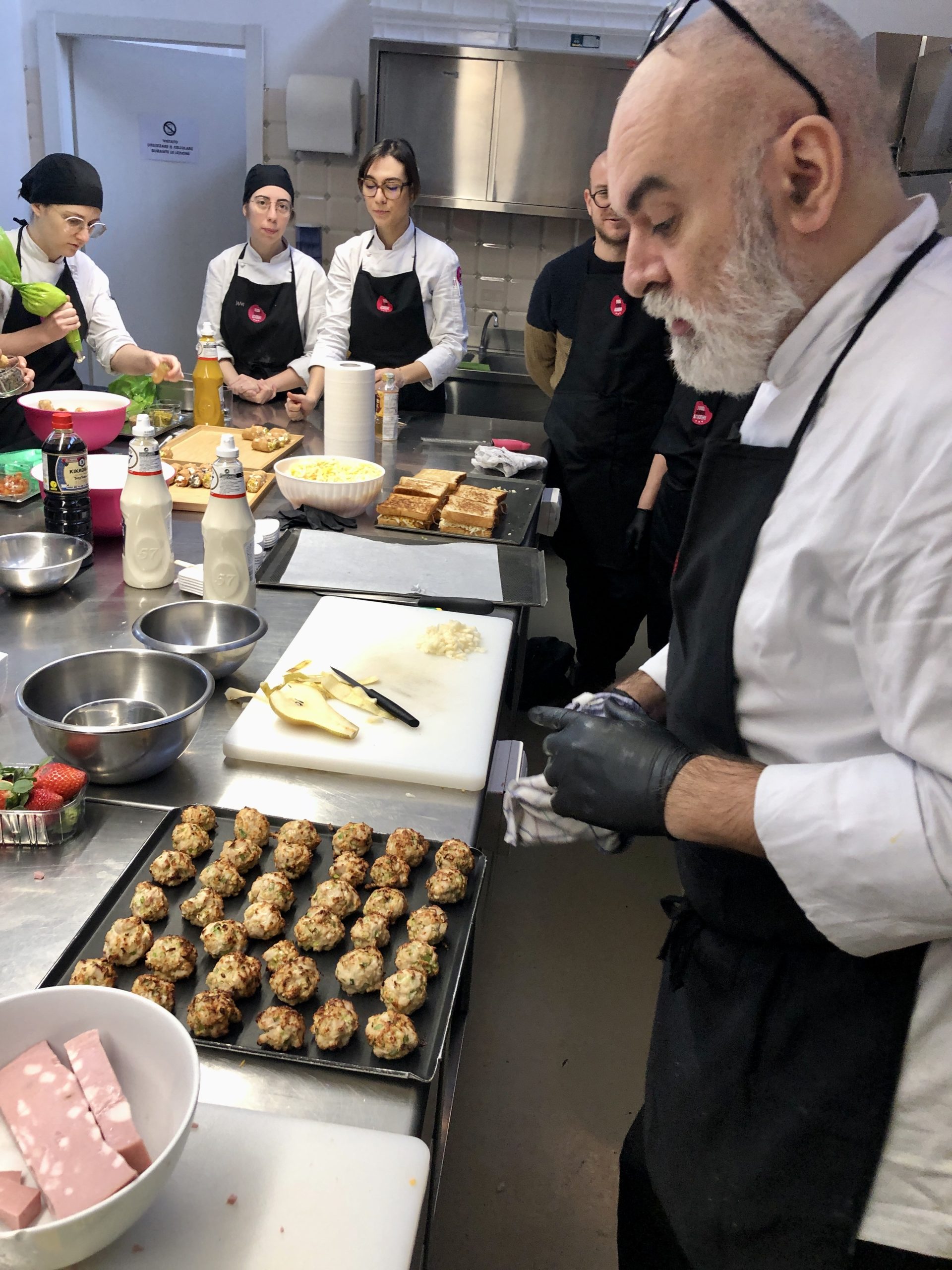 Il top chef Marco Bovio ha dato rinnovata prova di fantasia e creatività, mettendo a punto quattro proposte di appetitosi finger food, facendole realizzare a un gruppo di giornalisti improvvisatisi cucinieri (tra i quali lo scrivente), il cui impegno è stato ricompensato con alcuni calici di Prosecco Superiore di Valdobbiadene Docg.