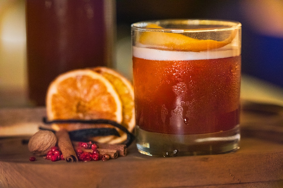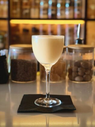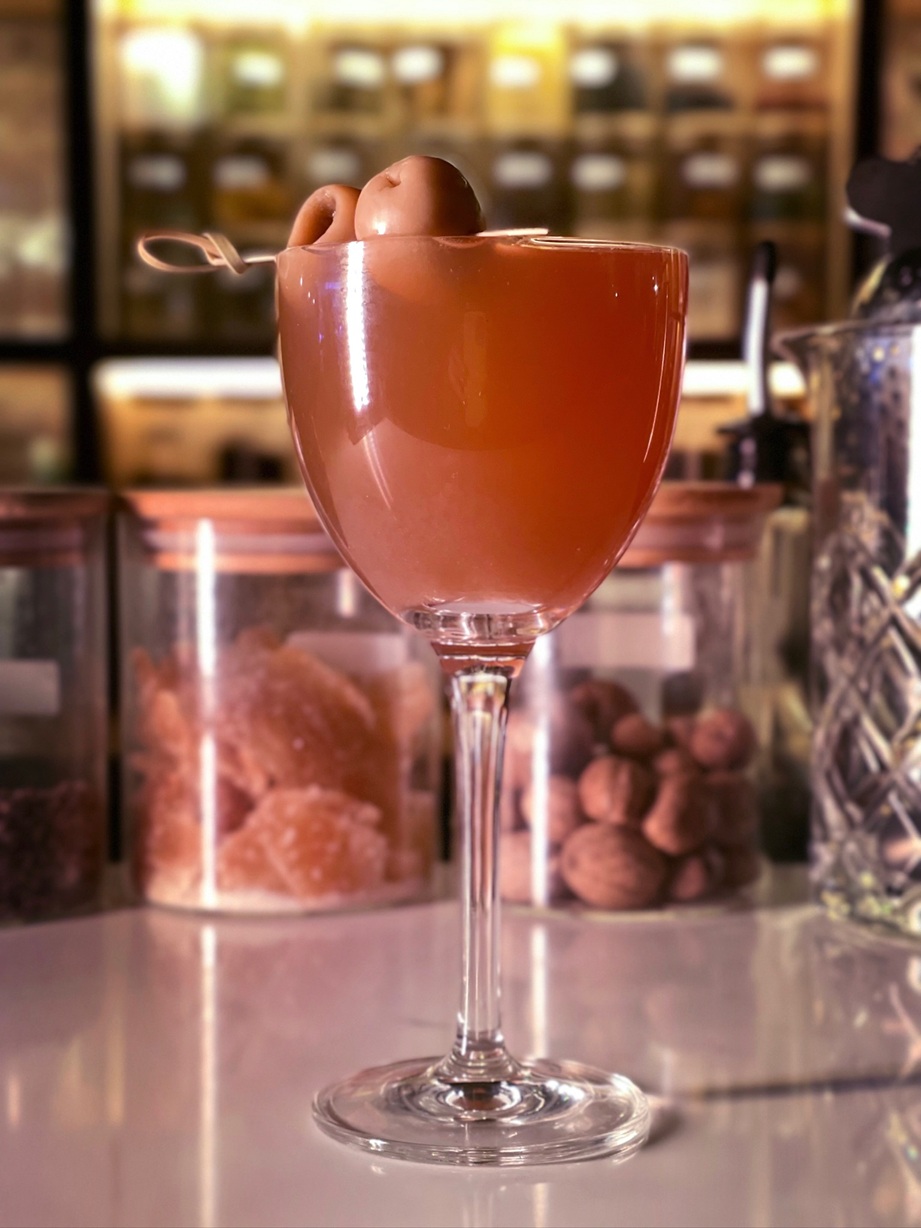 E quattro drink, disponibili solo nel locale: Nocturnal Mystery, a base espresso con una setosa finitura di vaniglia, Ginger Reflections, dal tocco speziato di zenzero e piacevolmente frizzante, Silver Veil, dall'acidità vibrante, e il già citato Olive Mirage.