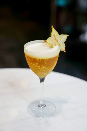 Il Fior di Frigola è invece un aperitivo con l’anima da divo, quello che arriva in scena dentro un mini-frigo, nell’era del “Frigobarman”, già questo dice tutto sullo spirito del progetto. Dentro, un Vermouth Martini Riserva Speciale Ambrato che incontra un infuso di fragola e Milky Oolong, completati dallo Champagne Lallier. L’effetto? Prima la sorpresa visiva, poi l’assaggio che gioca in punta di fioretto: floreale, morbido, quasi cremoso al palato, con note di fragranza fruttata che si rincorrono come luci al neon su un lungomare romagnolo ai tempi d’oro delle sale giochi. È un drink che si apre lentamente, come un tramonto che non ha fretta di chiuderla lì.