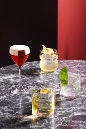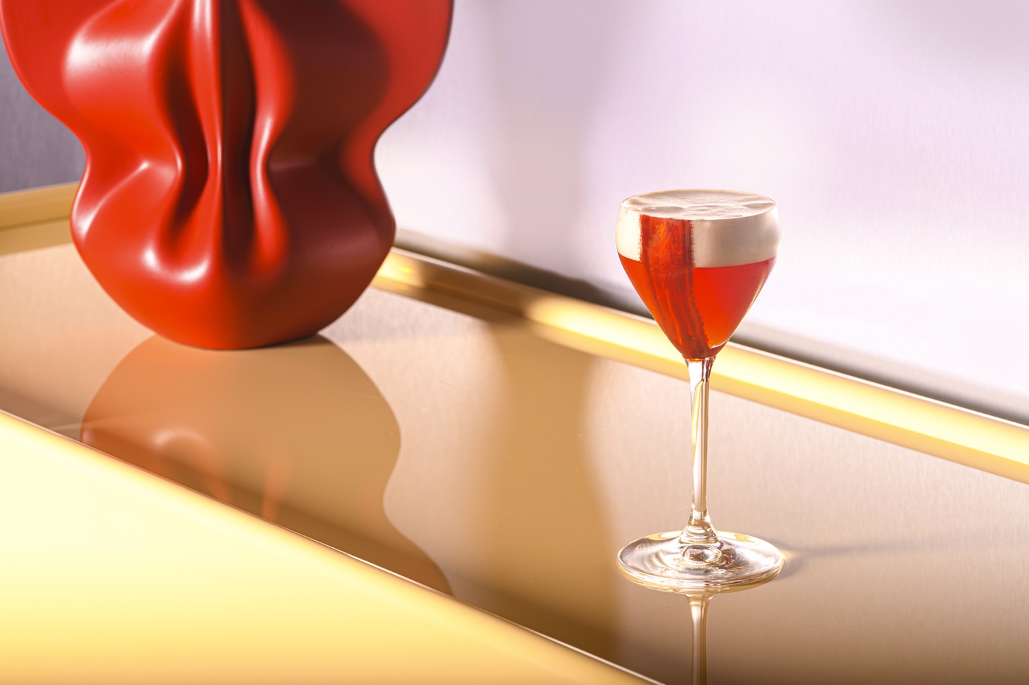 Collezione che prosegue con Tre Pezzi, ispirato alla poltrona disegnata nel 1959 da Franco Albini e Franca Helg, reinterpretazione moderna della bergère. La struttura tubolare metallica, che riprende il corrimano disegnato dallo stesso duo per la Metropolitana di Milano, che sostiene i volumi imbottiti e avvolgenti si traduce in un drink altrettanto rotondo, realizzato con Bitter Rosso Strucchi, Vermouth Rosso Strucchi e velluto di chinotto, per un sorso pieno e avvolgente dove l’agrume fa da filo conduttore.