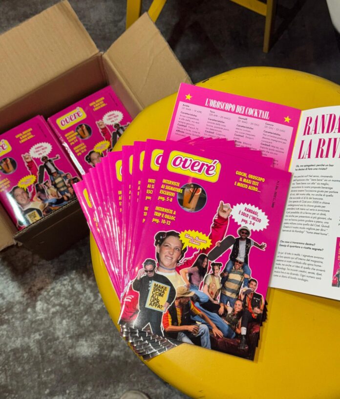 Randagi, street bar in centro, a via Bellini, ha riportato in vita un pezzo di immaginario anni Novanta: la rivista Cioè. Il risultato è un menu ribattezzato Overè (davvero è, ndr, acquistabile compreso di gadget per 5 euro). «L’idea di questo cocktail menu è nata da un confronto con Federica Mazzei e Luigia Frezza, co-titolari del locale», racconta la bar manager Anna Garuti, ideatrice dei drink. «Lo abbiamo strutturato seguendo proprio il layout della rivista con interviste agli artisti che hanno dipinto i muri del locale, il maxi test, la sezione dove scrivere i propri pensieri e, nelle pagine centrali, i sette signature cocktail presentati come se fossero delle persone». La presentazione dei drink non è quindi un semplice elenco di ingredienti, ma una vera e propria intervista. Ad Anti Cosmo, twist sul Cosmopolitan con vodka, Contrae, cranberry e cherry liquor, chiarificato con yogurt e servito in coppetta con una finta ciliegina maraschino, viene chiesto: «Se potessi avere un superpotere, quale vorresti?». A Tom Select, cocktail che richiama Tom Selleck e la celebre serie Magnum P.I., una interpretazione del Cardinale con Select, Noilly Prat e Beefeater Gin, guarnito con una spuma di arancia salata, la domanda è invece: «Qual è la tua grande tentazione o debolezza?». Le domande diventano così un pretesto narrativo per dare voce ai drink, che si raccontano attraverso i loro ingredienti. «La ricerca sui cocktail è stata ispirata ai drink degli anni ’90 e dei primi Duemila che venivano serviti in discoteca», continua Garuti. «Con questo menu abbiamo deciso di riportarli in auge, valorizzandoli però con tecniche contemporanee di miscelazione».