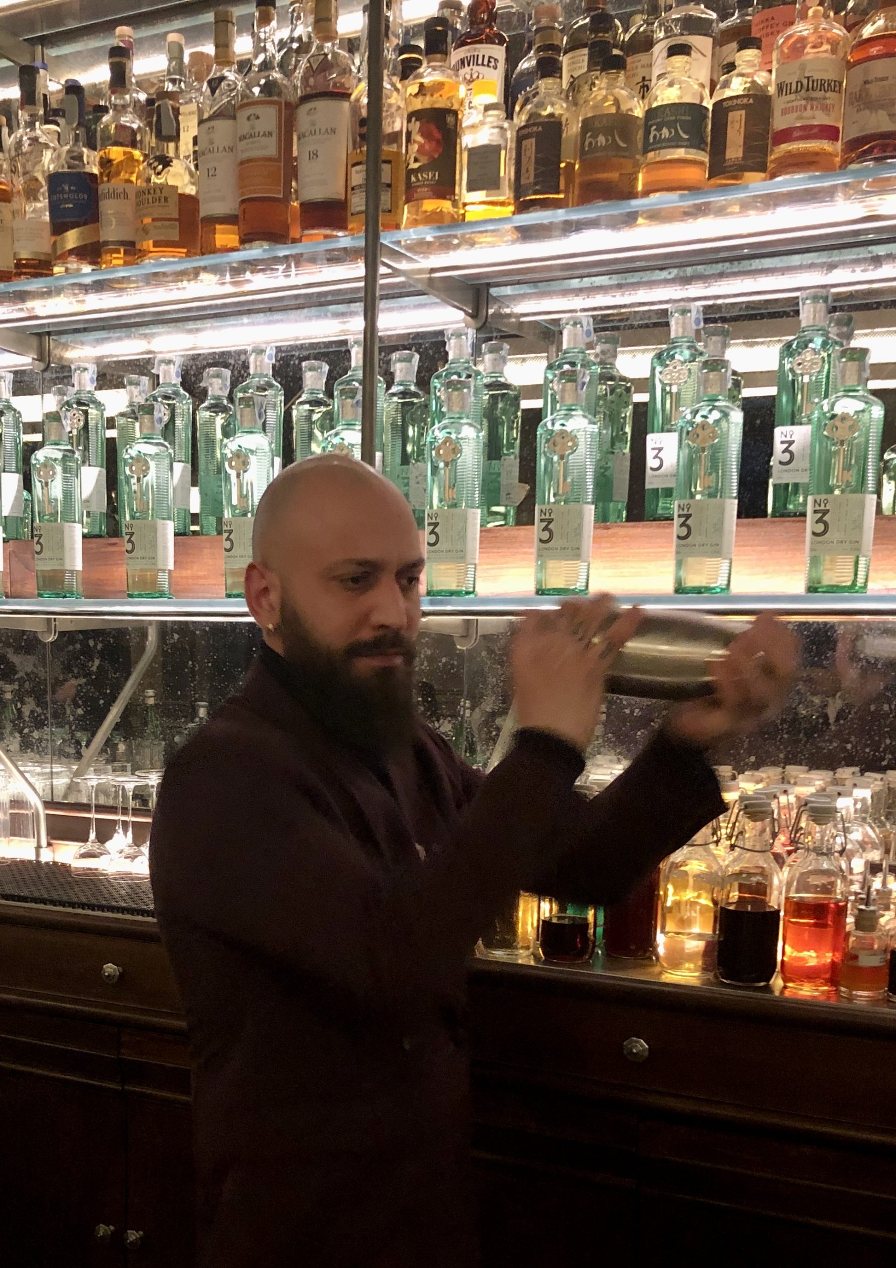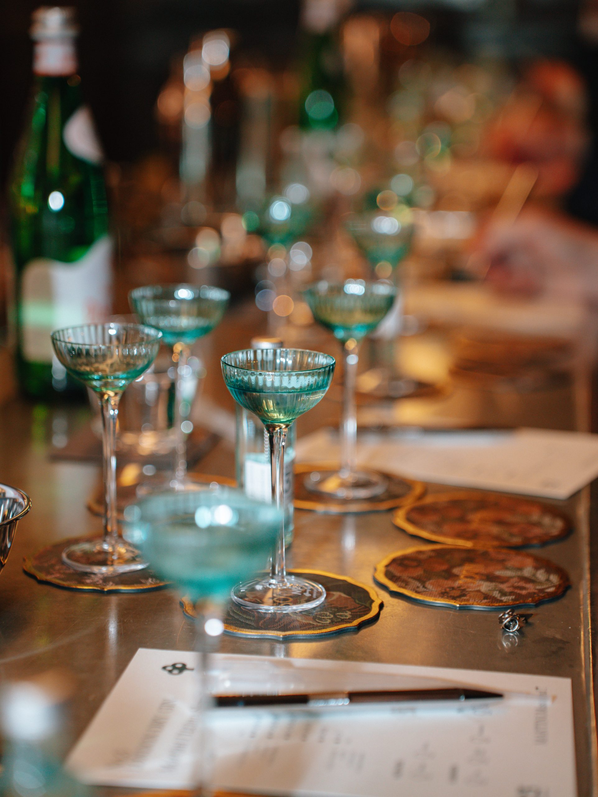 Nelle iconiche coppette in stile N*3, London Dry Gin N° 3 Organic è stato servito nelle versioni stir e shaker sottolineando il diverso rendimento, più morbido quello agitato, più profumato quello mescolato. In un'altra coppetta invece i degustatori hanno potuto reallzzare un proprio Martini Dirty, mescolando a propria scelta la quantità di tre provette con acqua salamoia, vermouth dry e London Dry Gin N°3 Organic. Per finire in scioltezza è stato servito un tumbler alto ripieno del Long Martini (Tom Collins), a base di London Dry Gin N°3 Organic, succo di limone, sciroppo di zucchero e soda, raffreddato da un ice block e guarnito con una scorzetta di limone.