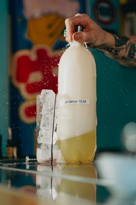 In un universo di tale spontaneità (loro la definiscono “anarchia positiva”), anche il repertorio cocktail non presuppone schemi fissi, ma una sorta di jam session dei prebatch, che si concretizza con una drink list scritta di volta in volta sul frigorifero. I tre bartender preparano i miscelati, proposti a 8 euro, oltre a uno Spritz alla spina venduto a 5 euro. C’è anche un sano lavoro di recupero degli scarti: si rilavorano i vini in mescita aperti da un po’, inoltre Biagio crea dei succhi di frutta e verdura, dando una seconda possibilità agli invenduti del vicino mercato della Garbatella. Il food qui è basico, olive e noccioline, salvo far riferimento all'enoteca La Mescita, giusto accanto, con cui è nato un sano rapporto di vicinato e collaborazione.