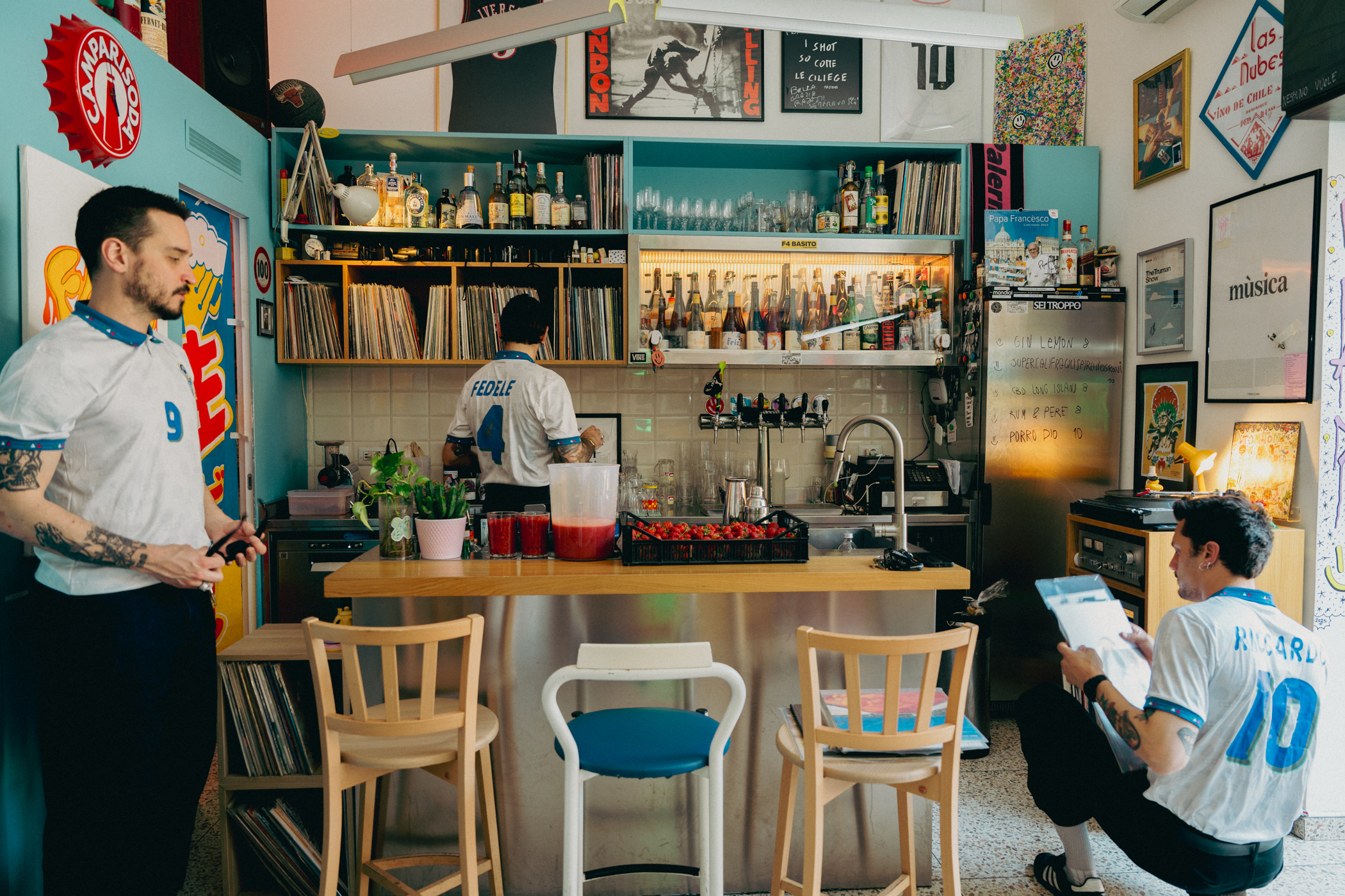Aperto da un paio d’anni da Riccardo Gambino, ha ritrovato nuova linfa con l’ingresso in società di Marco Fedele e l’arrivo del bartender Biagio Gennaro. Un trio d’amici che ha messo il suo stile in ogni angolo. Quel che colpisce è che sia tutto molto spontaneo: mentre parliamo con Fedele qualcuno inizia a fare le bolle di sapone, una ex cliente promossa cameriera dà una mano a sbarazzare i tavoli in piazzetta, per ordinare e pagare ci si alza e si va in cassa, intanto arriva il momento di cambiare il vinile e la scelta è collegiale. Anche l’estetica del locale è autentica e per chi è cresciuto negli anni Novanta è una specie di capsula del tempo del trash moderno (chi è passato per lo stand Molinari al Roma Bar Show ne aveva avuto un assaggio). «È stata un’idea di Riccardo - racconta Fedele -, riportare qui la sua cameretta. Poi siamo arrivati noi e abbiamo aggiunto quello che ci rappresentava». Il risultato è un accumulo adolescenziale di passioni sui muri, giustapposizioni di memorabilia anni Novanta, che vanno dall’altarino ad Ambra, alla parete dedicata al Palermo calcio («qui siamo tutti siciliani», chiosa Fedele).