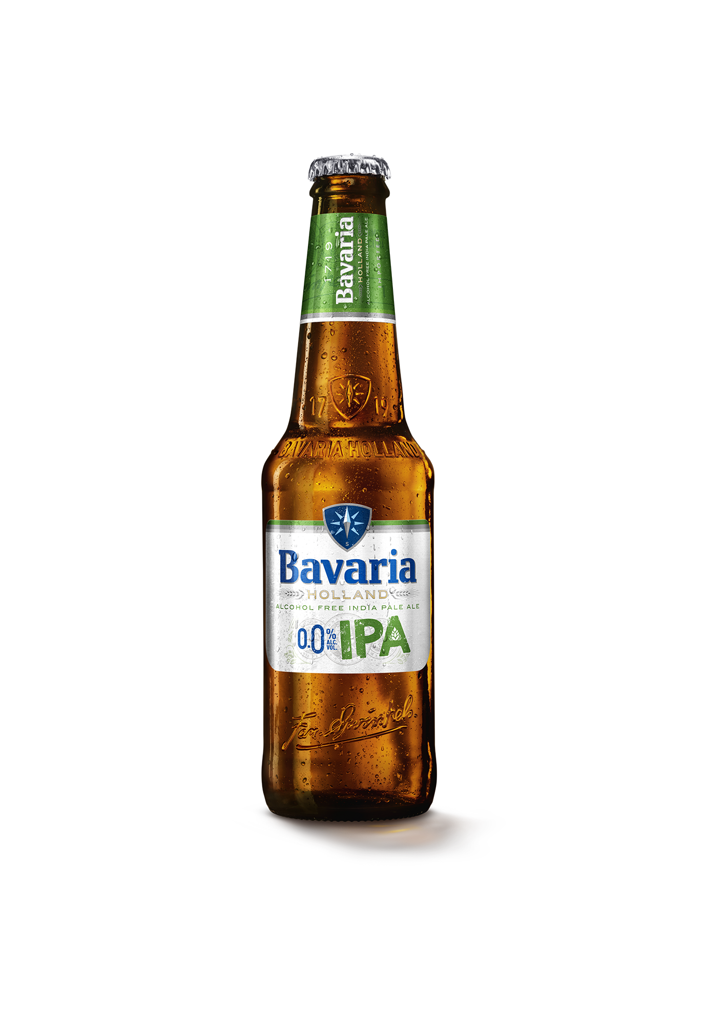 Bavaria 0.0% Ipa, è invece una Indian pale ale analolica dalla grande ricchezza aromatica, con note di luppolo e sentori di frutta tropicale e agrumi, rinfrescante e facile da bere, con il suo gusto luppolato, lievemente amaro, con note dolci. In bottiglia da 33 cl, è prodotta con quattro varietà di luppoli americani e australiani, Citra, Amarillo, Ella e Simcoe, e con acqua minerale naturale proveniente dalla sorgente di proprietà, ed è ideale per un aperitivo, ma anche per accompagnare un pranzo o una cena.