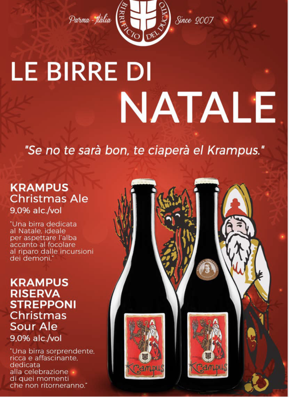 Una delle prime birre di successo prodotte nel 2007 dal birrificio modenese di Giovanni Campari (oggi parte del gruppo internazionale belga Duvel), Krampus è ora disponibile in bottiglia 33 cl. Il nome deriva da un'antica leggenda medievale alpina che raccontava di giovani delinquenti vestiti con pellicce e corna, a foggia di demoni (krampus), che in tempi di carestia (ma non solo) scorrazzavano per i villaggi vicini derubandone gli abitanti. Le scorrerie venivano esorcizzate invocando l'intervento e la protezione di San Nicola (personaggio precursore di Babbo Natale) che al contrario portava doni, in particolare ai bambini.
