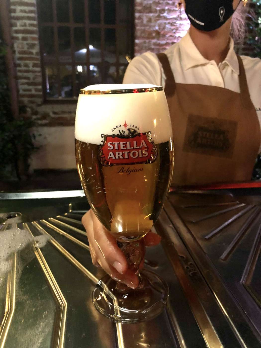 servizio al tavolo della giuria di due calici Stella Artois da 40 cl (pieni).