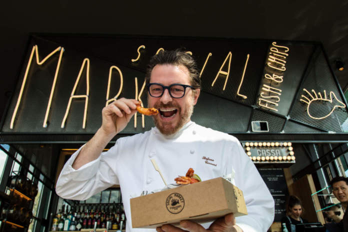 Street food di qualità, firmato dallo chef stellato Stefano Cerveni, ma a prezzi in linea con quelli del mercato. È la formula del take away Social Vista Fish & Chips, il nuovo format del Gruppo Vista di Ugo Fava, Cerveni e Marco Giorgi, che comprende Terrazza Triennale – Osteria con Vista, Triennale Social Pizza, Vista Darsena e Laboratorio di Pasticceria a Vista, tutti a Milano. Social Vista Fish & Chipsha aperto a inizio maggio all'interno del Mercato della Darsena di Milano. Le voci in menu sono tre: pesce (merluzzo bianco dell'Atlantico) con salsa di piselli fatta in casa (€9,50); gamberoni fritti, melanzane e maionese al rafano (€9,50); pollo fritto e salsa allo yogurt (€9).
