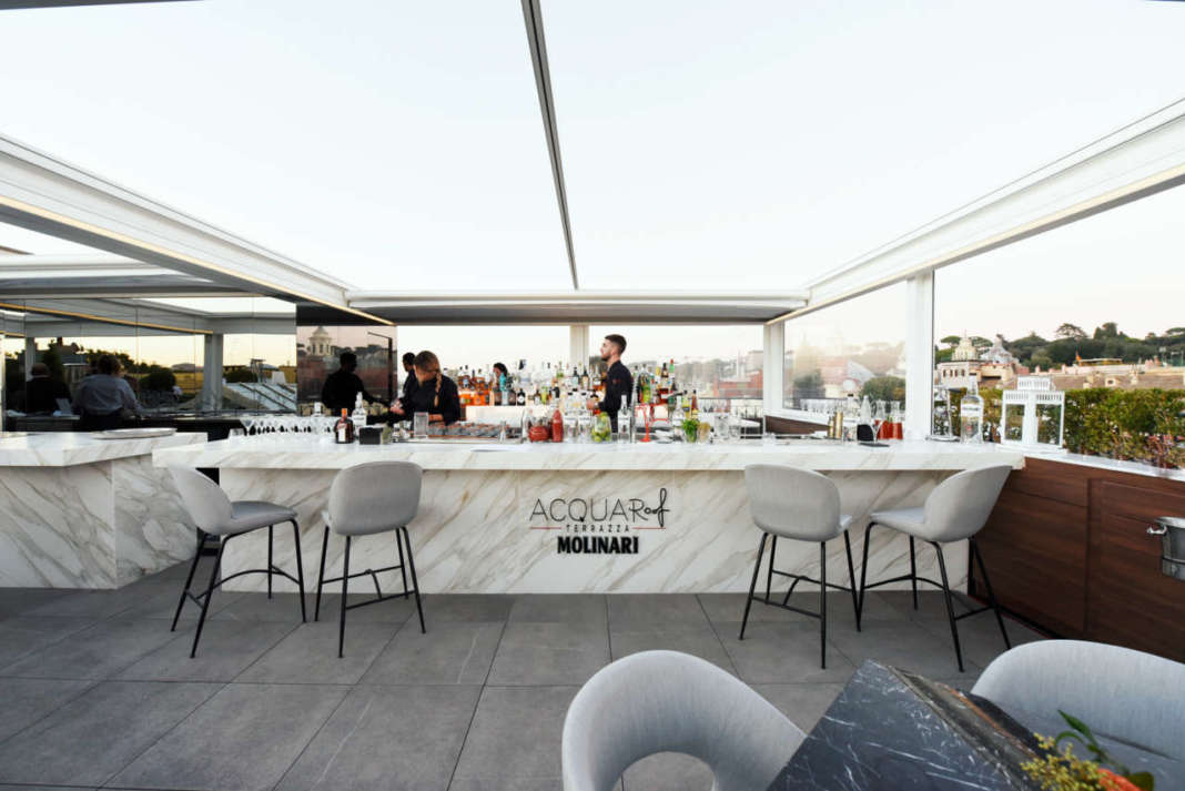 Al sesto piano del boutique hotel The First Roma in via del Vantaggio, la terrazza Acquaroof, costola dello stellato Acquolina, diventa Terrazza Molinari. Simbolo dell’imprenditoria liquoristica laziale, famoso in tutto il mondo per la sua sambuca, Molinari era alla ricerca di uno spazio nel centro storico della capitale, che potesse considerare come casa propria e ha scelto di puntare su Acquaroof e sulla barmaid Valeria Bassetti. Dal canto suo Valeria ha accettato di diventarne bar manager per una promessa fatta ad Alessandro Narducci, il giovane chef di Acquolina tragicamente scomparso in un incidente stradale a soli 29 anni lo scorso giugno. E mentre Angelo Troiani, mentore di Narducci, ha ripreso le redini delle cucine di Acquolina e Acquaroof, a Valeria Bassetti veniva affidato il compito di creare una carta dei drink con un tocco marino. Acquaroof è stato infatti pensato come una Sea Lounge, dove si possono degustare le gocce, ovvero piatti che attingono alla tradizione e che puntano sulla materia prima, prevalentemente di mare, esaltata da minime manipolazioni. E poi c’è l’abbinamento con i drink di Valeria e del suo team, con tanto di contaminazione estrema nei #Foodrink, in cui l’elemento food è letteralmente immerso nel drink o l’elemento alcolico diventa alimento, magari sotto forma di una spuma su un’ostrica.
