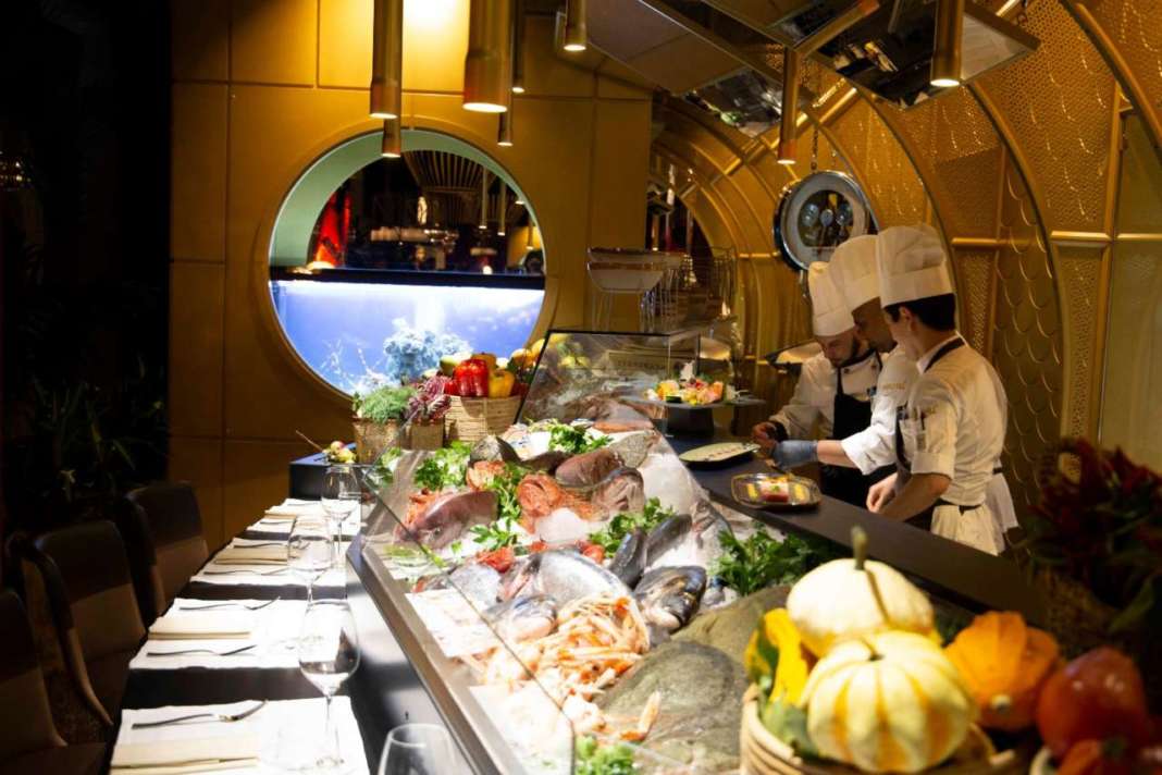 «Il menu è lo stesso in tutti gli ambienti, per il 95% a base di pesce – spiega D’Andrea -. La cucina è al piano terra e si compone di un grande bancone, dietro al quale lavorano il crudo quattro persone, e della cucina vera e propria, tutta a vista. Proponiamo cucina italiana, peruviana e giapponese. E i nostri pleateau imperiali da 2 e 4 persone, molto scenografici. Il prezzo medio? 100-120 euro a persona».